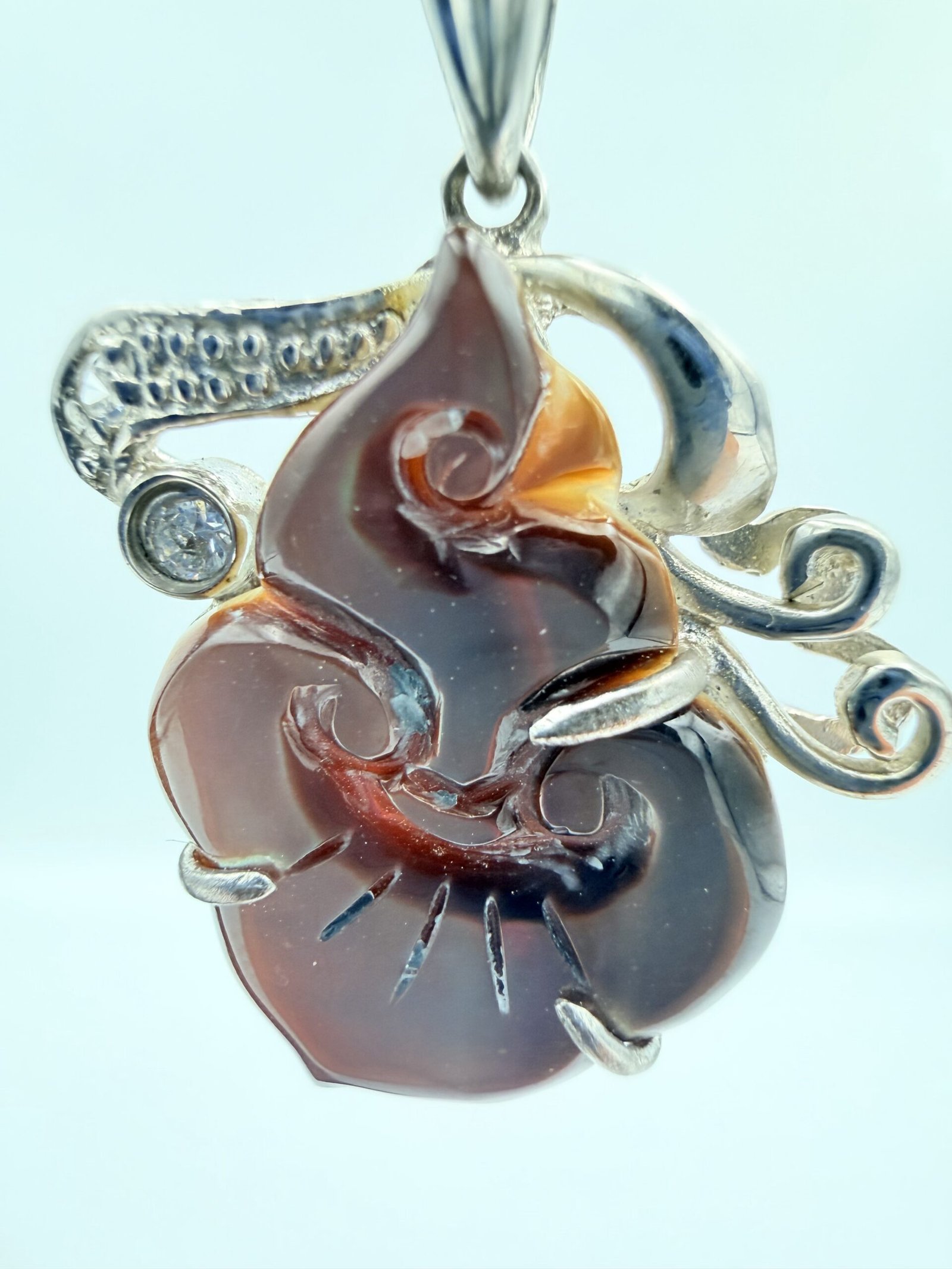 Hand-Carved Yellow Shell Scorpio Zodiac Pendant – 925 Sterling SilverAlternative view of Hand-Carved Yellow Shell Scorpio Zodiac Pendant – 925 Sterling Silver