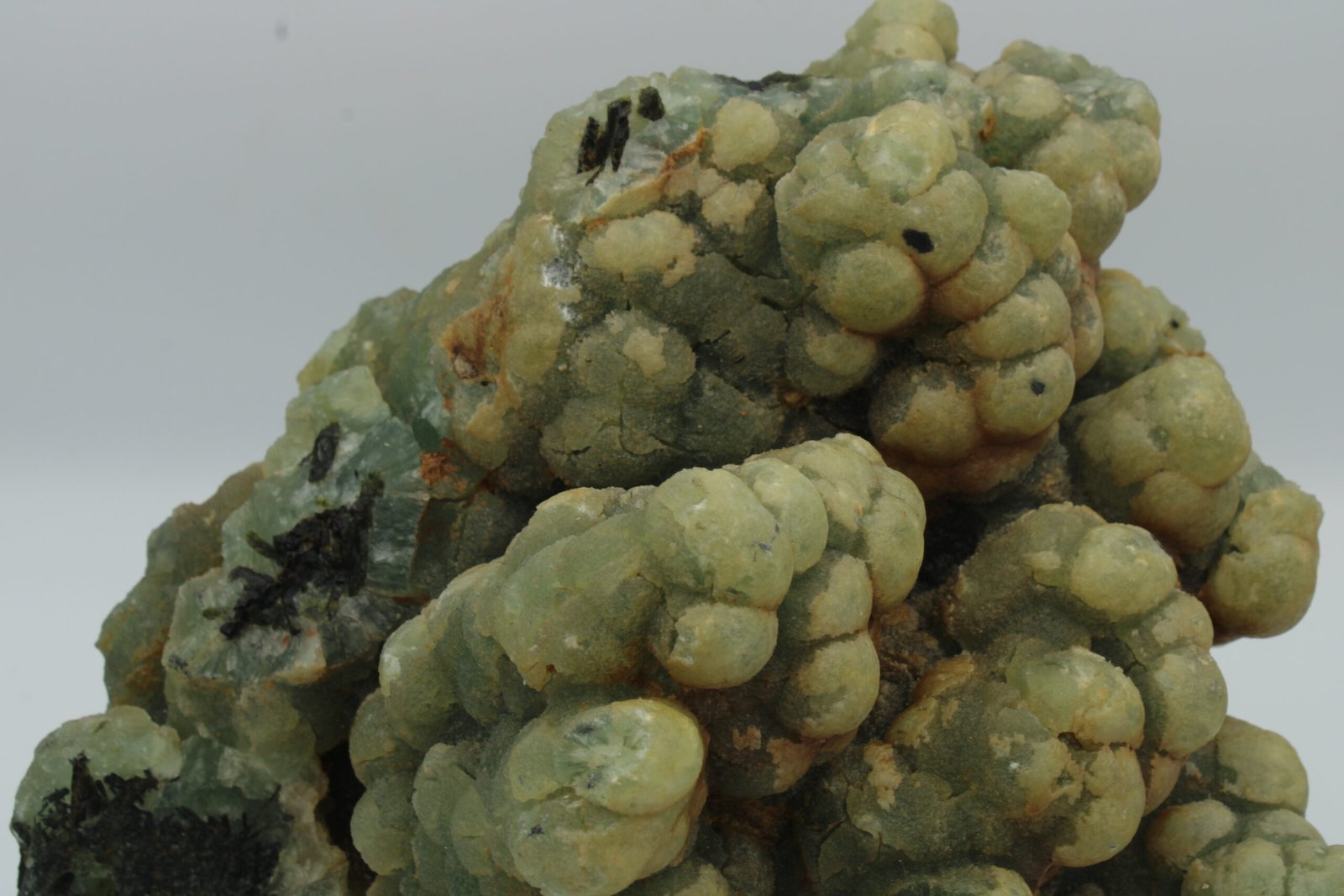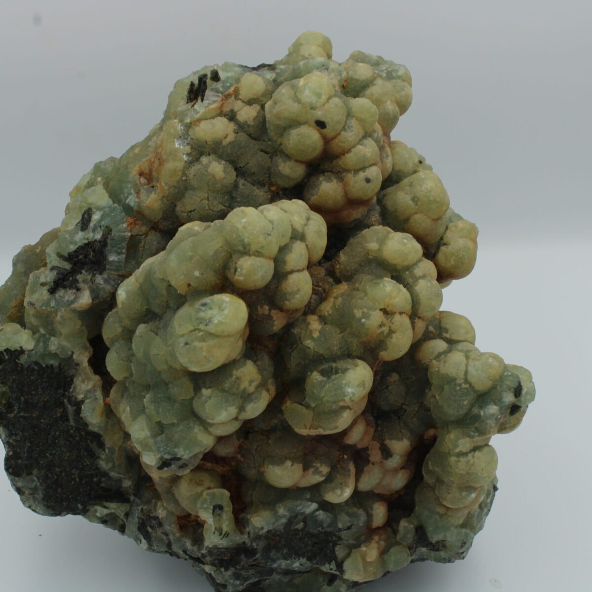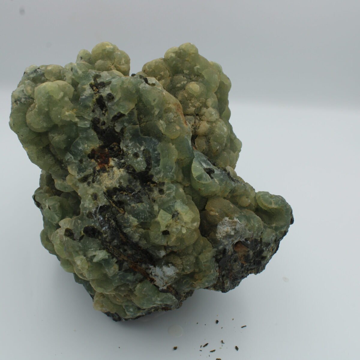 Prehnite typically forms in igneous rocks, especially in cavities and veins, and can also be found in metamorphic rocks. It’s commonly associated with minerals like epidote, quartz, and calcite. Its unique, soft green glow makes it a popular choice for collectors and those interested in metaphysical properties, where it’s believed to foster intuition, healing, and peace. In terms of its physical properties, prehnite is relatively soft with a Mohs hardness of 6, so it’s important to handle it gently to prevent scratching or damage. It has a distinctive pearly to vitreous luster and a translucent quality that adds to its ethereal, otherworldly appearance.