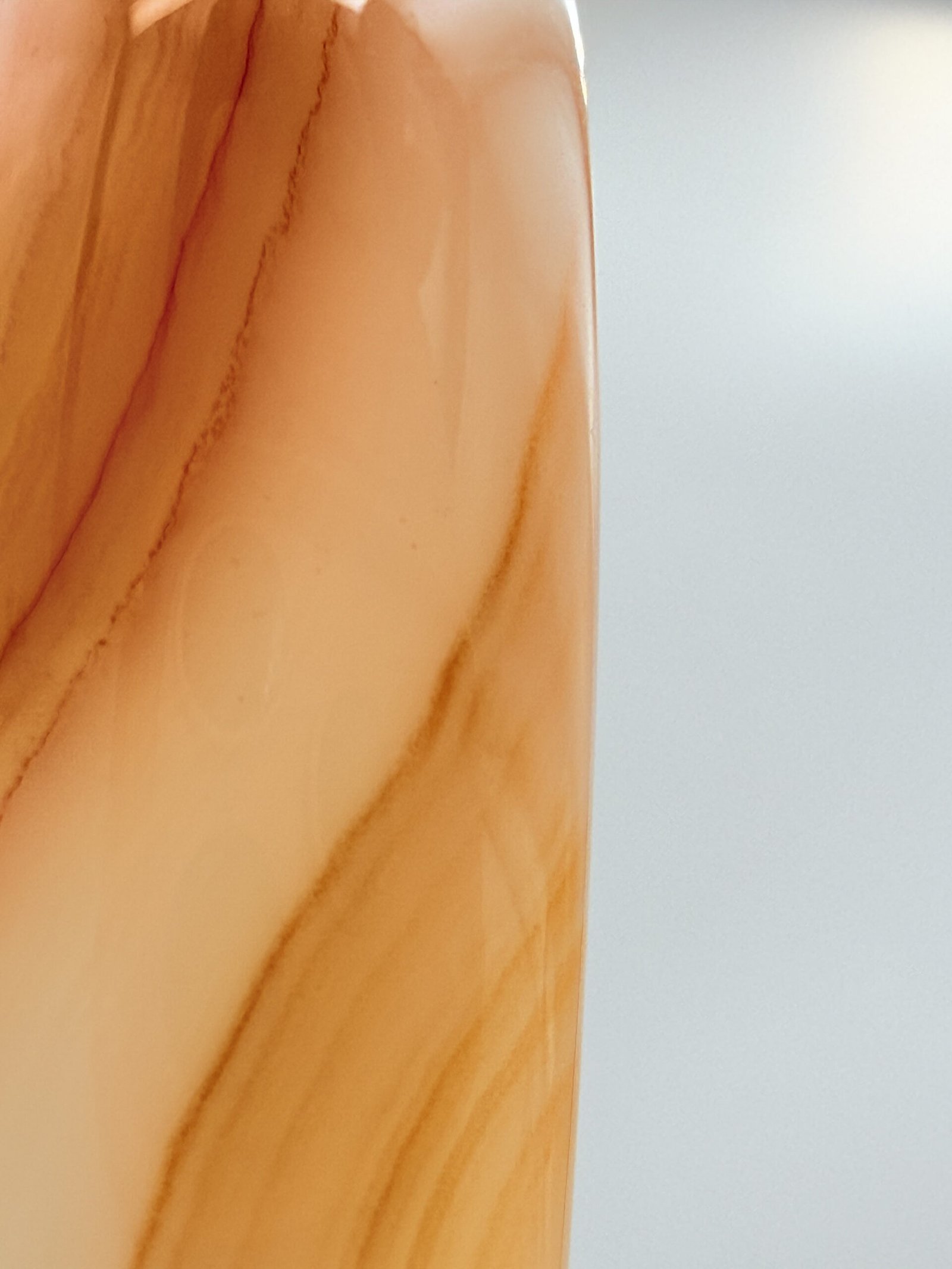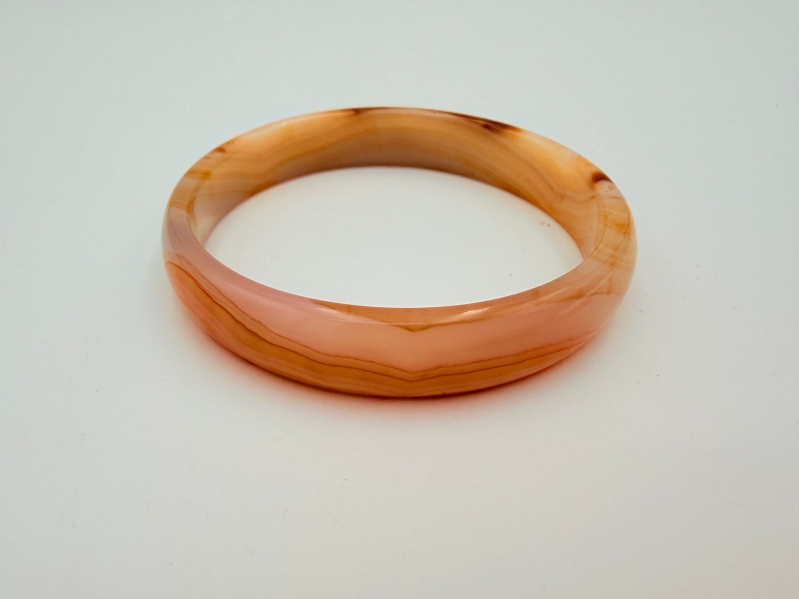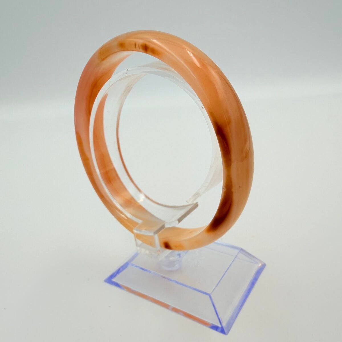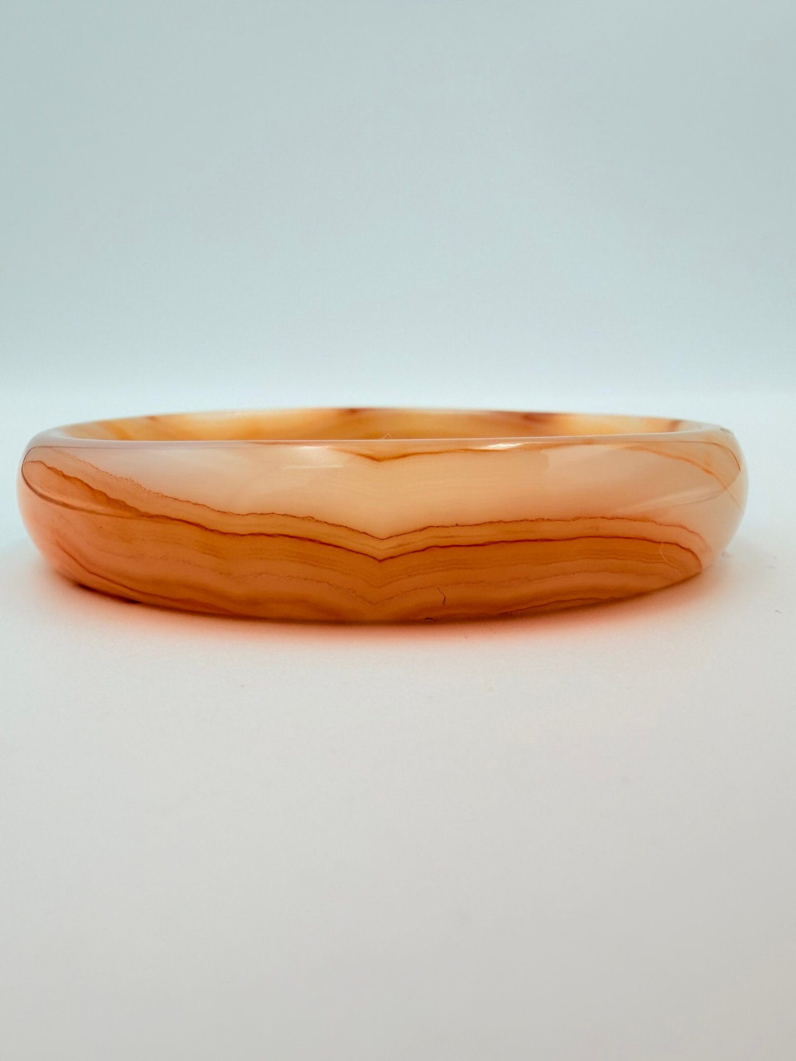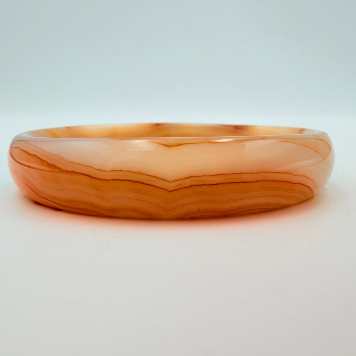 This elegant bangle is a “hololith,” a rare jewelry style meticulously carved from one solid block of high-quality Agate. Because it is 100% natural stone with no metal joins or hinges, it offers a continuous, flowing aesthetic that feels smooth and substantial on the wrist.