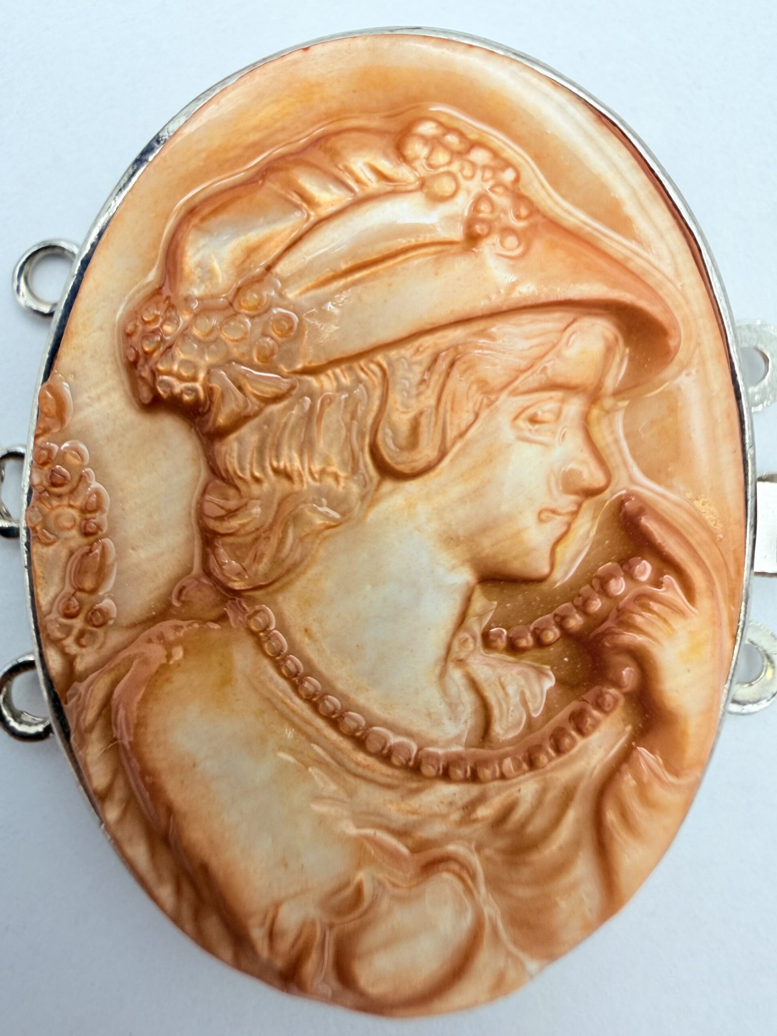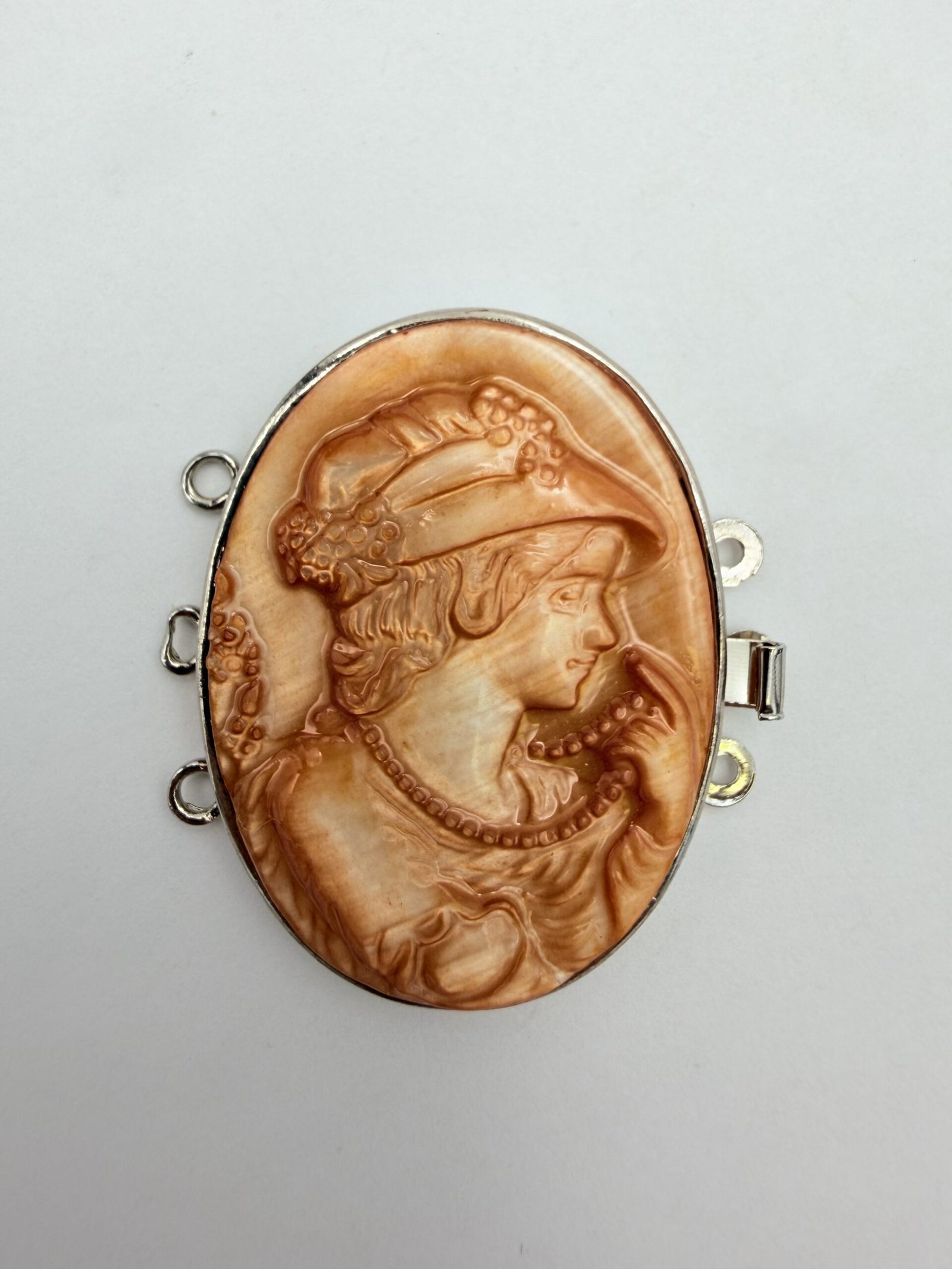 Round Brown Shell Silver 925 Flora portrait Pendant