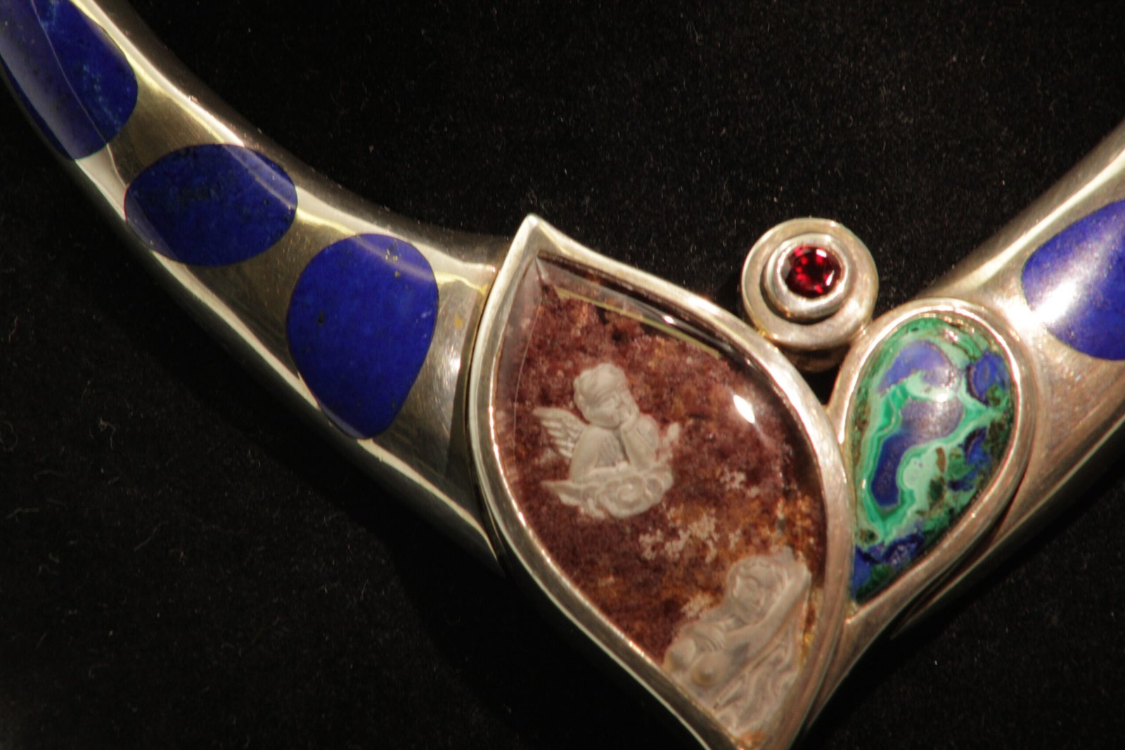 Sterling silver Cupid carved necklace