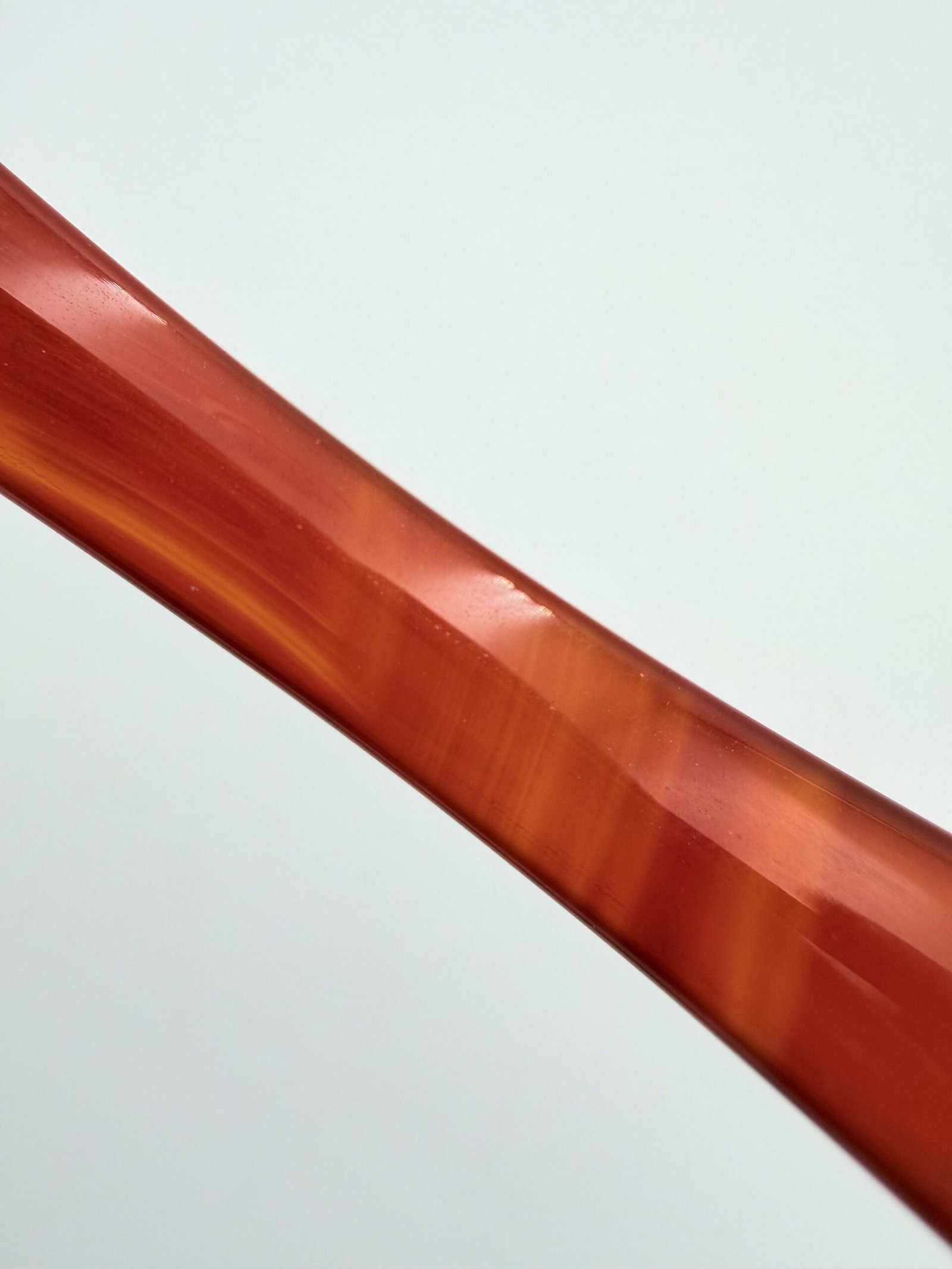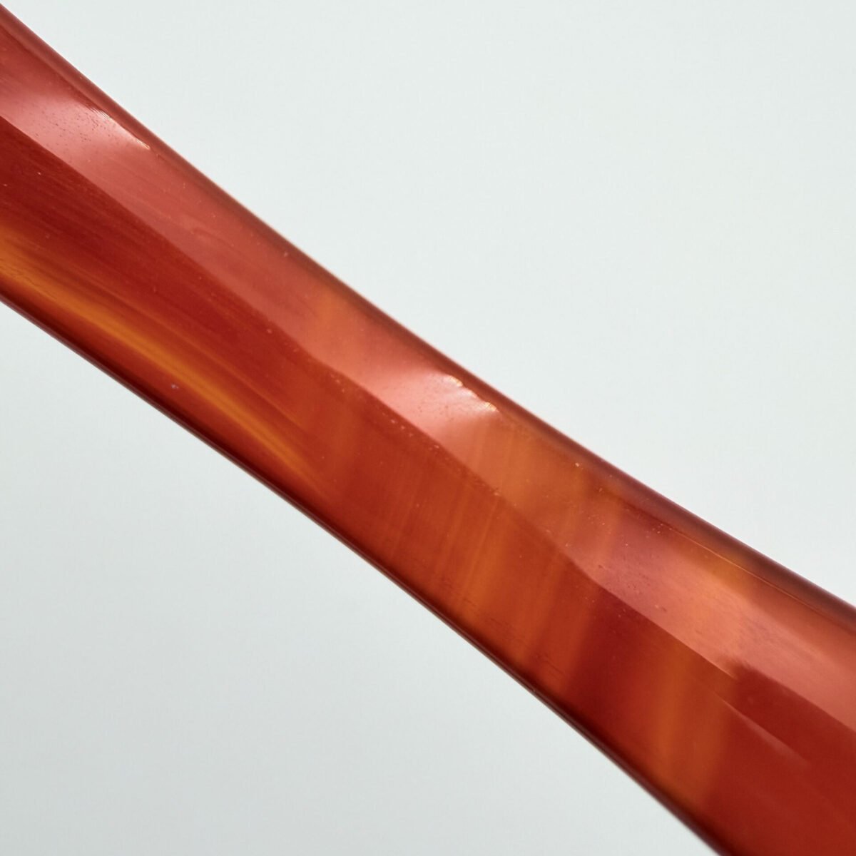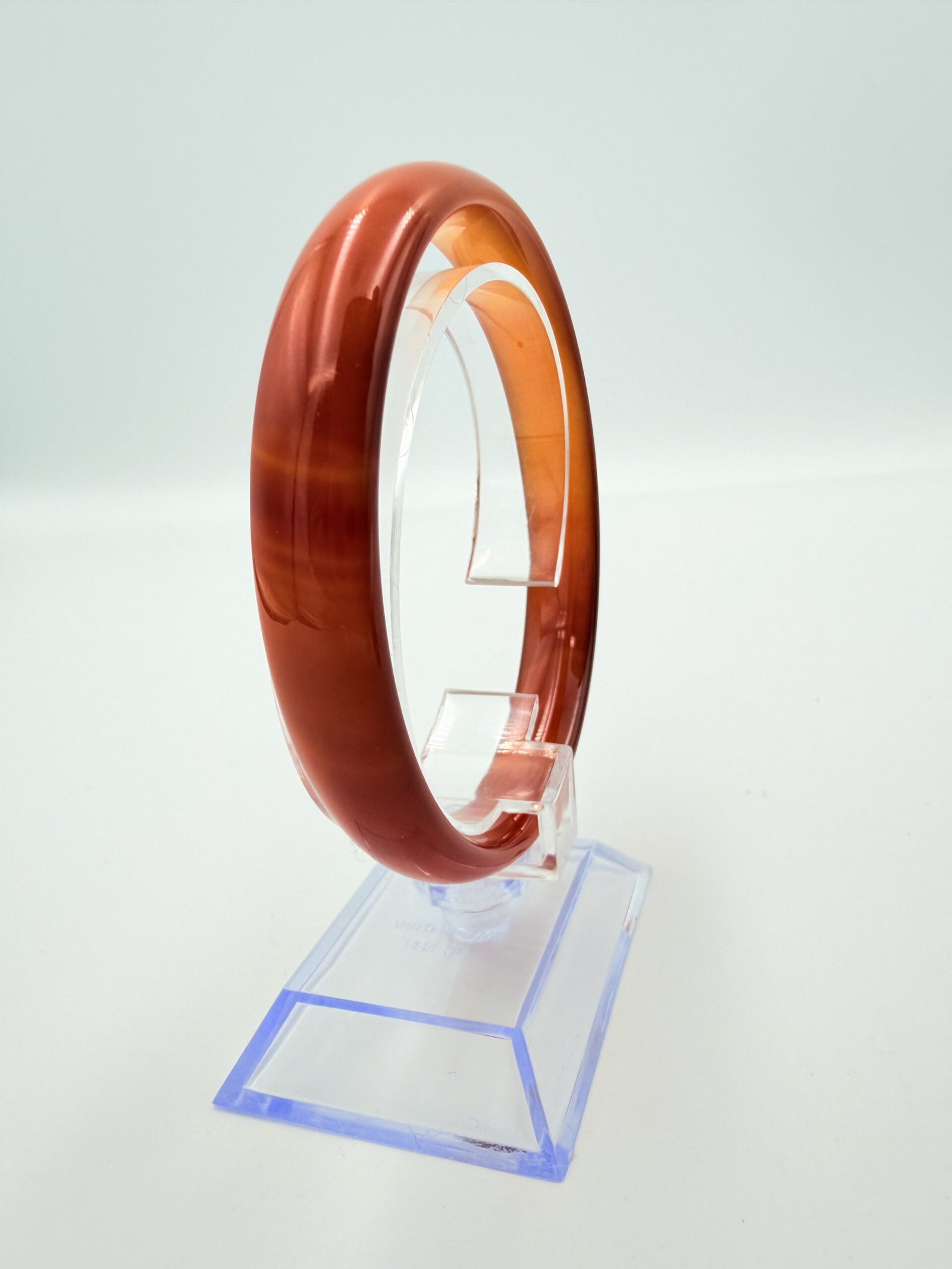 A radiant Natural Orange Agate Bangle featuring elegant translucent banding and a high-gloss finish. Sized at 60-70mm in diameter and 7-12mm wide, this vibrant gemstone bracelet provides a boost of creativity, confidence, and warm grounding energy.